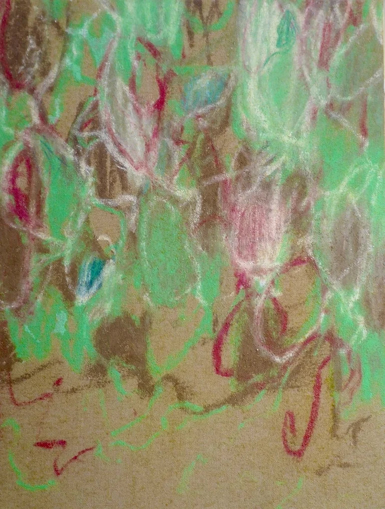 Pastel, tempera, pencil on linen on panel